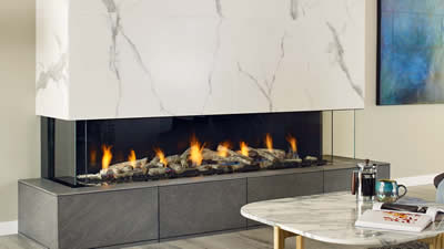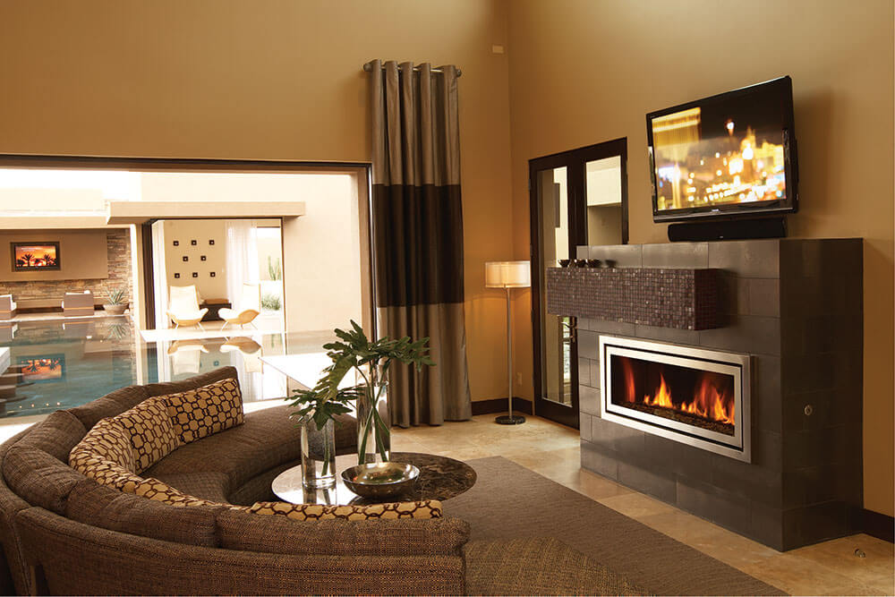 These large linear gas fireplaces exude elegance and beauty and make every home brighter.